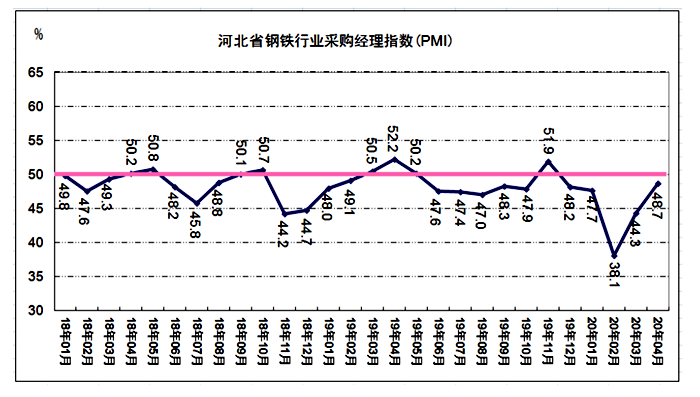 长城网讯(记者 郑建卫 通讯员 付军立) 2020年5月1日,河北省冶金行业协会发布2020年4月份河北省钢铁行业PMI为48.7%,环比上升4.4个百分点,连续两个月保持回升态势。